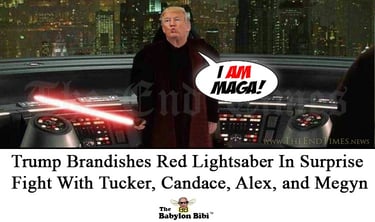Trump Brandishes Red Lightsaber In Surprise Fight With Tucker, Candace, Alex, and Megyn
